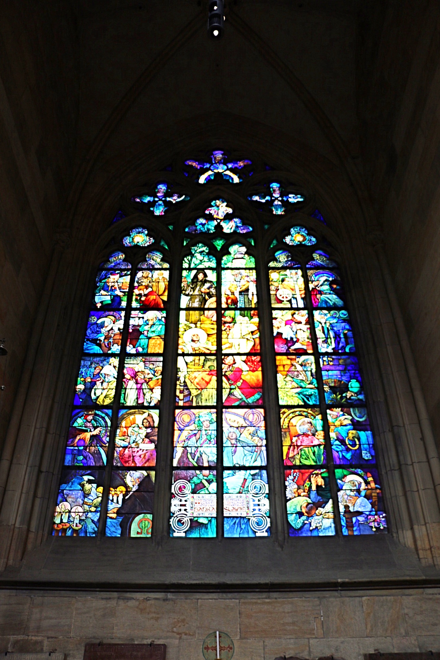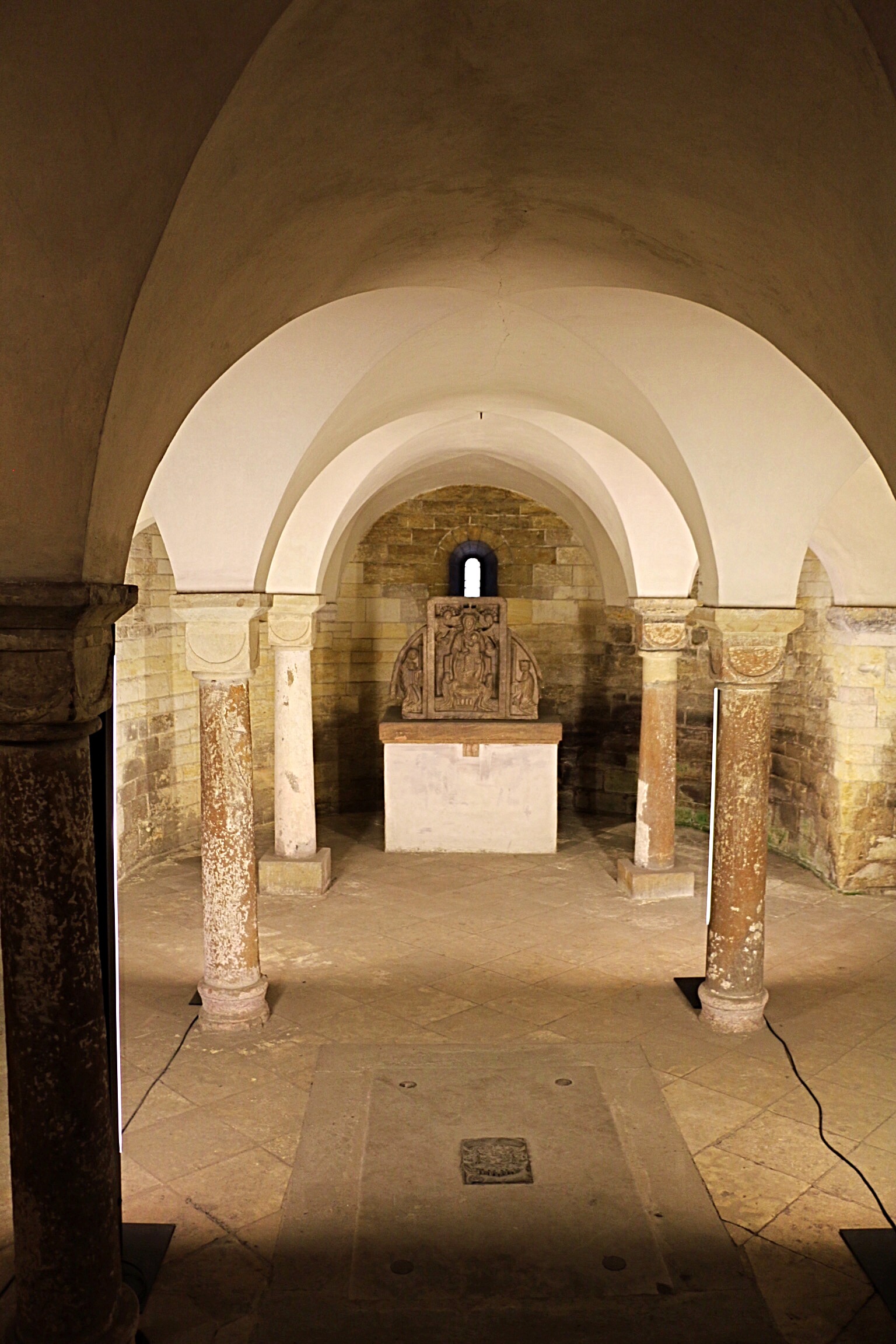 Descending the seemingly never-ending staircase, I finally reached St. Peter’s church (est. 1230) once again. Thankfully finding it unlocked, I ventured inside, admiring the rich ornamentation and beautiful interior in the early French Gothic Style. While not as ostentatious as those in Italy or Central and South America, what I admired most was the beautiful organ and the brightly colored capitals on the columns.